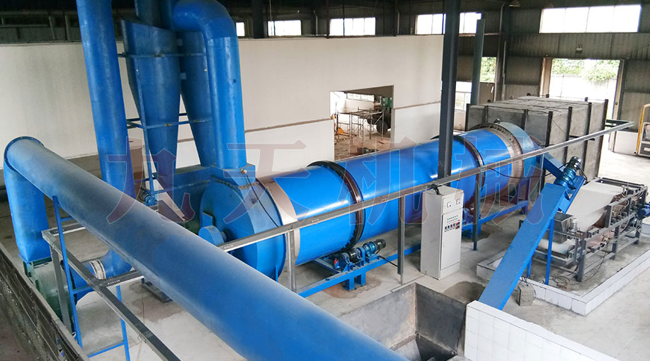 采用三層打散式滾筒烘干機進行干燥脫水,高濕豆渣由螺旋輸送機送入滾筒內(nèi),在抄板下不斷抄起、散落呈螺旋行進式前進,內(nèi)置攪拌槳葉裝置將物料充分攪拌打散破碎,充分擴大物料與熱氣熱交換面積,這樣就解決了黏壁現(xiàn)場,同時,滾筒烘干機內(nèi)部設(shè)置有震打清理裝置,防止物料與筒壁粘接而料幕均勻,受熱面積大,通過率高,很大程度上避免了糊料的發(fā)生。